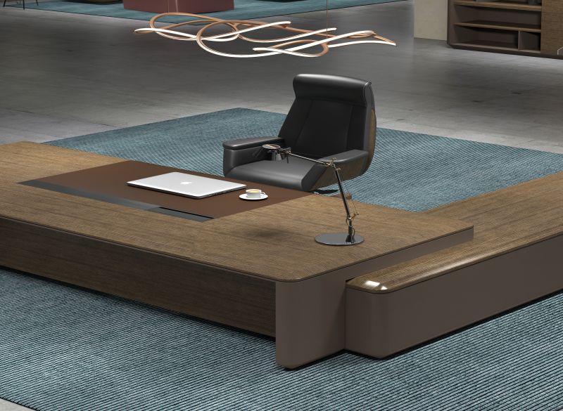 1、貼面材料:采用進口天然直紋胡桃木皮,厚度0.6mm;對紋、對色加工 2、封邊用材:與貼面相同的木皮封邊; 3、基材:采用“上思華林”E0級高密度板; 4、油漆:面漆采用“華潤”PU聚脂漆; 5、五金配件:德國進口BMB品牌緩沖導軌、BMB緩沖門鉸;歐派克旗艦5號或圖特T312緩沖趟門配件;臺面配黑拉絲走線盒及黑拉絲裝飾鋁板;隱藏式走線功能; 6、特殊工藝:采用底部采用大斜邊工藝,由巴吉5軸數(shù)控中心加工完成